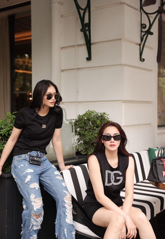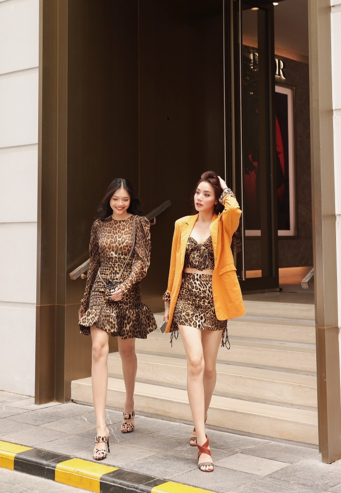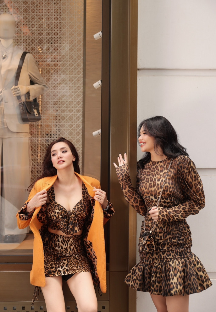 Trong bộ ảnh street style mới nhất, Trang Nhung và cháu gái Thanh Trâm diện các trang phục theo phong cách năng động, đồng điệu màu sắc, chất liệu, gồm áo thun phối quần jeans hay kiểu váy họa tiết da báo sành điệu.