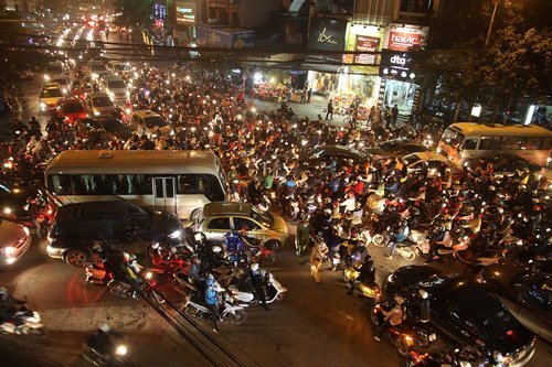 Đã 18h nhưng mật độ giao thông ở Hà Nội vẫn rất cao, tình trạng ùn tắc diễn ra phổ biến (Ảnh: Phạm Hải)