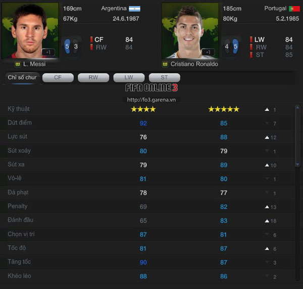 Messi (RW 84) và Ronaldo (LW 84), không biết bao nhiêu lần 2 cái tên này được nhắc trong những năm vừa qua. Không chỉ đối đầu với nhau trên sân cỏ mà còn ở mặt thương hiệu. Chỉ 1 trong 2 người đã là mối nguy hiểm đáng sợ đối với hàng thủ đối phương, nhưng nếu cả 2 kết hợp với nhau, chắc hẳn sẽ không có gì có thể ngăn cản họ. Với 2 cái tên này ở 2 hành lang cánh, sẽ khó có hàng phòng ngự nào chịu được sức ép từ những đôi chân tốc độ, kỹ thuật đã bao lần khiến thế giới bóng đá phải chao đảo.