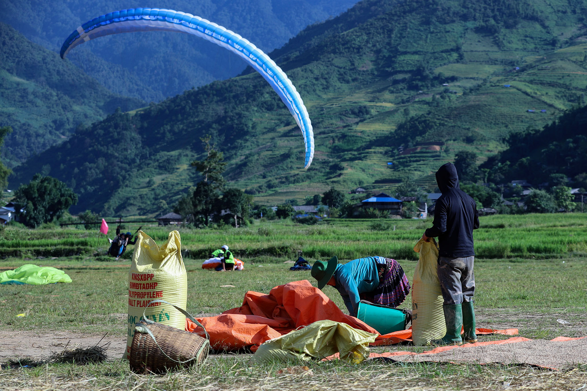 Nằm trên trục quốc lộ 32, đèo Khau Phạ, nằm giữa huyện Văn Chấn và huyện Mù Cang Chải, Yên Bái là một con đèo dài, quanh co và đẹp nhất được chọn thực hiện môn thể thao mạo hiểm dù lượn. Những thửa ruộng bậc thang vào mùa gặt nhuộm vàng thung lũng Lìm Mông. Địa điểm này được giới phi công đánh giá là 1 trong 4 điểm bay đẹp trên cả nước và là một trong những điểm bay đẹp nhất của thế giới.Mỗi chuyến bay kéo dài chừng 15 đến 20 phút tùy điều kiện thời tiết du khách phải trả 2 triệu 500 nghìn đồng vào các ngày cuối tuần và 2 triệu 100 nghìn đồng vào những ngày khác. Dịp cao điểm lễ hội, do lượng khách có nhu cầu bay rất đông nên thường du khách phải đặt trước nếu không muốn chờ đợi lâu.Du khách được dùng thiết bị chụp ảnh của ban tổ chức để tự chụp lưu lại hình ảnh tuyệt đẹp của các thửa ruộng bậc thang bên dưới vàng rực.Nếu may mắn gặp thời tiết thuận lợi, du khách sẽ được thưởng thức cảnh đẹp kỳ vĩ không tưởng của mây trời, núi rừng Tây Bắc.Bãi đáp của những chuyến bay dù lượn cũng là nơi tập kết, phơi lúa sau khi gặt.Lễ hội dù lượn lần đầu tiên được tổ chức vào năm 2015 và duy trì đến nay đã giúp nhiều bà con dân tộc Thái, Mông sống trên địa bàn thoát nghèo và thậm chí làm giàu trên chính quê hương. Những năm gần đây đã không còn cảnh tuốt lúa thủ công chủ yếu dùng sức người như trước kia nữa.Festival dù lượn Khau Phạ trở thành thương hiệu riêng hấp dẫn, thu hút khách du lịch đến với vùng cao Mù Cang Chải. Năm nay, Festival dù lượn Khau Phạ thu hút 100 phi công trong nước và quốc tế tham gia.Mỗi dịp lễ hội, 25 tài xế xe ôm người dân tộc Mông, Thái ở xã Cao Phạ lại tất bật đưa đón phi công, du khách từ bãi đáp trở lại đỉnh đèo Khau Phạ. Ngày thường mỗi tài xế xe ôm chạy 5, 6 chuyến, ngày cuối tuần từ 10 đến 12 lượt với giá 70 nghìn đồng/chuyến cho du khách và 80 nghìn đồng đối với phi công do phải chở thêm dù lượn.Những tài xế xe ôm thường giúp thu gấp dù cho phi công trước khi đưa trở lại điểm xuất phát trên đỉnh đèo Khau Phạ cách bãi đáp chừng 15 km. Anh Lường Văn Quý, người dân tộc Thái là tổ trưởng tổ xe ôm (người đội mũ vải bên trái) cho biết đội tài xế xe ôm hầu hết chỉ làm thời vụ các dịp Lễ hội dù lượn được tổ chức, thời gian còn lại người thì làm nông, người đi làm công nhân ở các khu công nghiệp.Một Youtuber từ TP Hồ Chí Minh đang giới thiệu Homestay Quyết - Đoản nằm ở bản Tà Sung, xã Cao Phạ, cùng với homestay Quân - Pỏm và homestay Kiên - Pành, homestay Quyết - Đoản là một trong các homestay đầu tiên ở Cao Phạ, tại đây có 20 đệm, phục vụ tối đa 30 khách/lượt bao gồm cả ăn, ngủ.Anh Lù Văn Quyết, chủ nhân homestay Quyết - Đoản trải lòng về những ngày gian khó xưa kia của vợ chồng anh " trước 2 vợ chồng chủ yếu làm nông, thu nhập thấp, cuộc sống bấp bênh, phải đi làm thuê hàng ngày ở các xã lân cận mà vẫn không đủ ăn, từ ngày làm homestay thu nhập khá lên nhiều. Anh cho biết từ tháng 5 năm nay nhà anh đón khoảng 300 khách, mỗi tháng 50-60 người với giá 150 nghìn đồng/người một ngày đêm". Hiện nay trên toàn xã Cao Phạ đã có 16 homestay đang hoạt động luôn kín khách dịp Lễ hội dù lượn này. Kiến trúc sư Trần Nhã cùng nhóm bạn sống ở TP Hồ Chí Minh sau chuyến đi dài bằng xe máy qua các địa điểm du lịch Sa Pa (Lào Cai), Mộc Châu (Sơn La) đã phải cẩn thận đặt chỗ online tại homestay Quân - Pỏm (Tà Sung, Cao Phạ) trước đó mấy ngày.Du khách hào hứng trước cánh đồng lúa nằm kế homestay Quyết - Đoản.Dòng suối trong mát uốn lượn quanh thung lũng Lìm Mông rất hấp dẫn du khách.Được biết đến là một huyện miền núi khó khăn của tỉnh Yên Bái, tuy nhiên với tiềm năng và rất nhiều lợi thế phát triển du lịch, Mù Cang Chải đang nhận được nhiều quan tâm và kỳ vọng phát triển, trở thành trung tâm du lịch lớn của vùng núi phía Bắc, góp phần thúc đẩy phát triển kinh tế - xã hội của địa phương, giúp người dân thoát nghèo.