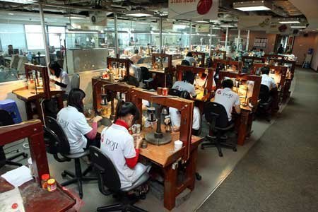 | Quy mô xưởng chế tác vàng, trang sức được trang bị máy móc hiện đại cùng nhân công lành nghề |
