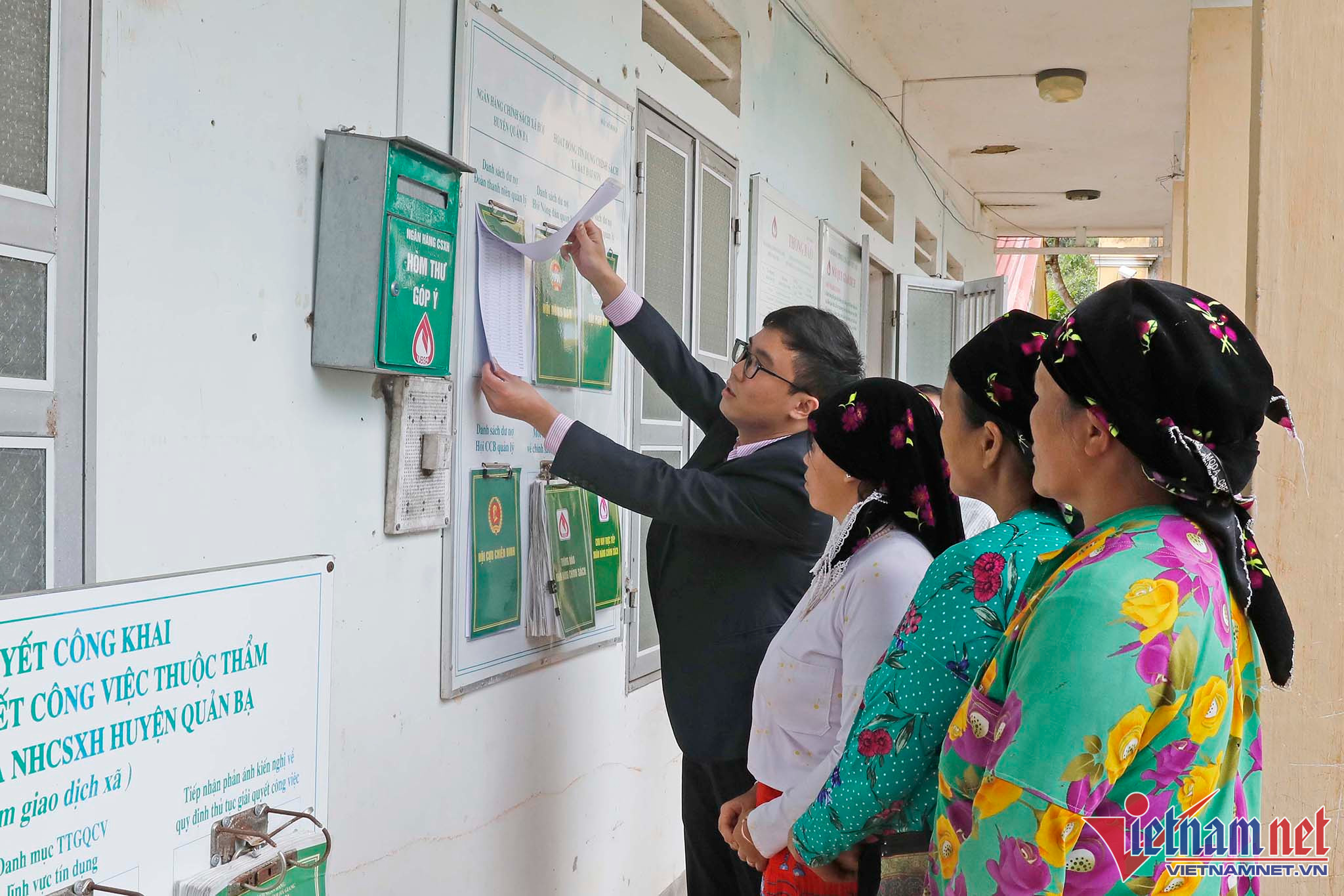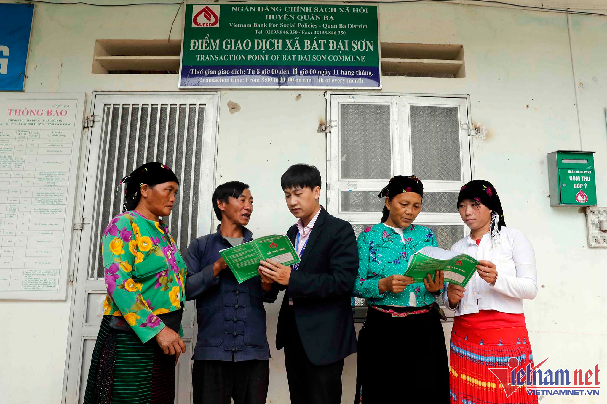 Hộ nghèo và đối tượng chính sách làm thủ tục vay vốn tại điểm giao dịch xã Trung Thịnh, huyện Xín Mần, Hà Giang.Gia đình chị Hầu Thị Máy, anh Và Mỹ Lự dân tộc Mông ở thôn Sán Trù, xã Bát Đại Sơn, huyện Quản Bạ vay vốn hộ nghèo đầu tư chăn nuôi gia súc, trồng hoa màu trên núi, gia đình có việc làm, tăng thu nhập.: Nhờ vốn vay ưu đãi, gia đình anh Hầu Sáo Vừ, dân tộc Mông ở xã Bát Đại Sơn, huyện Quản Bạ có điều kiện chăn nuôi bò sinh sản, gia đình có việc làm, thu nhập, có cơ hội thoát nghèo. : Gia đình anh Giàng My Páo, dân tộc Mông ở thôn Sán Trù, xã Bát Đại Sơn, huyện Quản Bạ vay vốn ưu đãi đầu tư xây dựng chuồng trại chăn nuôi bò cho hiệu quả tốt, gia đình hiện có 5 con bò. Một buổi giao dịch cho vay hộ nghèo và đối tượng chính sách tại điểm giao dịch xã Bát Đại Sơn, huyện Quảng Bạ, Hà Giang. Một buổi bình xét hộ vay tại xã Quản Bạ, huyện Quản Bạ.Người dân tham khảo tham khảo bảng niêm yết công khai tại điểm giao dịch xã Bát Đại Sơn, huyện Quản Bạ, Hà Giang. Cán bộ NHCSXH huyện Quản Bạ hướng dẫn, giải thích cho bà con đến vay tại điểm giao dịch xã.Vốn tín dụng chính sách góp phần giúp mùa màng của bà con xã Bát Đại Sơn bội thu. Vốn tín dụng chính sách góp phần giúp mùa màng của bà con xã Bát Đại Sơn bội thu. Với địa hình núi cao, gieo trồng khó khăn, người dân vùng khó khăn Hà Giang cần nhiều sự hỗ trợ vốn vay ưu đãi. Một buổi giao ban giữa Ngân hàng và các cấp chính quyền tại điểm giao dịch xã Bát Đại Sơn, huyện Quản Bạ.Đại diện các hội, đoàn thể tại một buổi giao ban trong ngày giao dịch xã.Nhiều xã viên HTX dệt thổ cẩm của phụ nữ Pà Thẻn ở xã Tân Bắc, huyện Quang Bình được vay vốn ưu đãi làm nghề dệt vải góp phần giữ gìn nghề truyền thống.