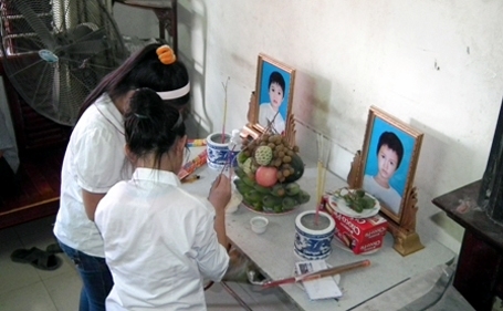 Thắp nén nhang trước bàn thờ, nhìn bức ảnh chụp hai em từ khi vào mẫu giáo. Hai đôi mắt tròn xoe trong sáng, hai gương mặt thơ ngây, đáng yêu, từ nay chỉ còn trong kí ức thương đau của mẹ cha, người thân.