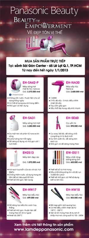 Từ 20/11/2012 đến 1/1/2013, Panasonic bày bán và cho sử dụng thử các sản phẩm làm đẹp Panasonic beauty dành riêng cho phái nữ trước sảnh Saigon Centre.