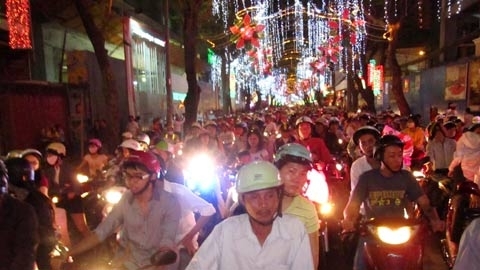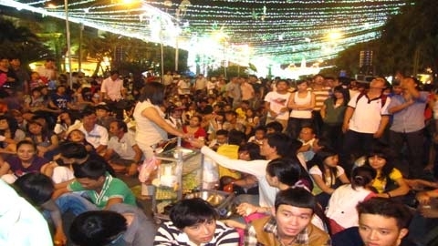 | Chật cứng người đi chơi năm mới - Ảnh: Thái Phương |