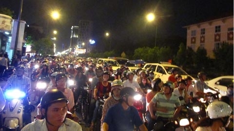 VietNamNet, đến khoảng 21h, các ngả đường vào trung tâm TP đều kẹt
