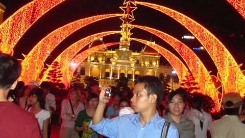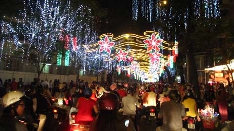 Từ 19h ngày 31/12, khu vực trung tâm thành phố bắt đầu đón hàng ngàn người đến vui chơi đón năm mới. Các tuyến đường như Nam Kỳ Khởi Nghĩa, Lê Duẩn, Đồng Khởi, Lê Lợi, Nguyễn Huệ, Hàm Nghi… sáng rực đèn trong đêm cuối cùng của năm.