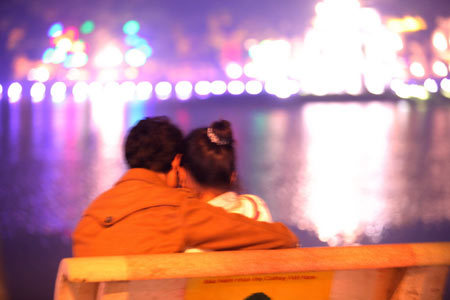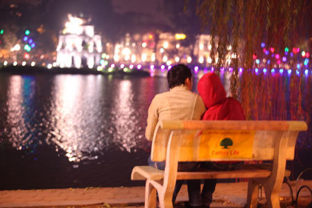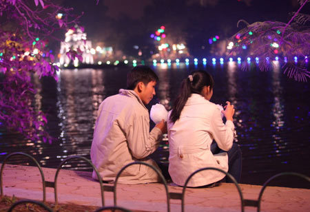 | Giây phút lãng mạn bên Hồ Gươm - Ảnh: Tâm Kem |