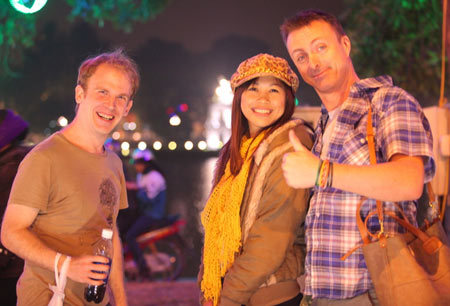 | Du khách nước ngoài đón năm mới trên đường phố Hà Nội - Ảnh: Tâm Kem |