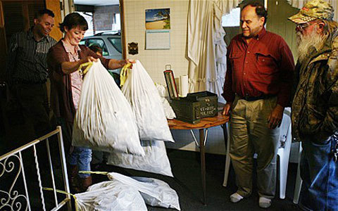 Vợ chồng Terri trao trả lại các bọc tiền cho chủ cũ của căn nhà.