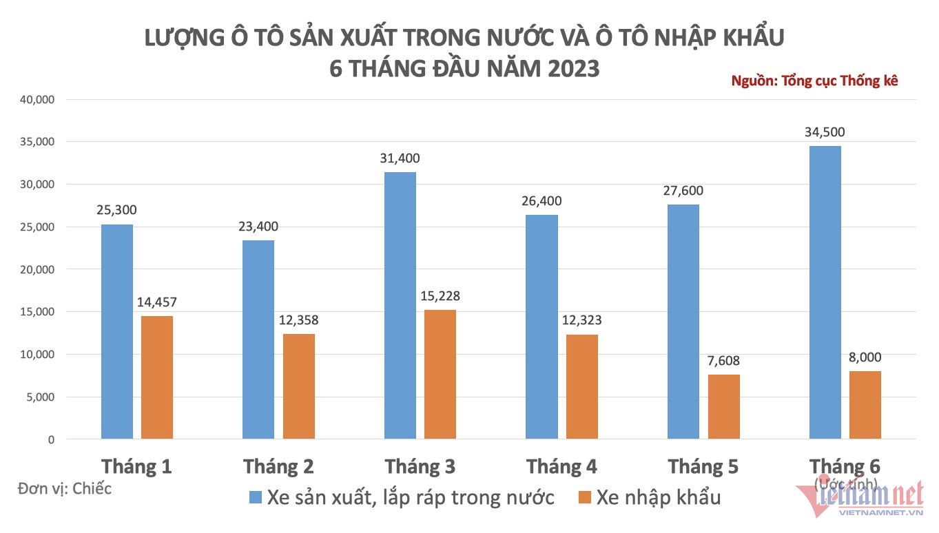 Cụ thể, theo báo cáo của Tổng cục Thống kê, lượng xe ô tô sản xuất, lắp ráp trong nước tháng 6/2023 ước đạt 34.500 chiếc, tăng tới 28,6% so với tháng 5 (với 27.600 chiếc) và đạt mức cao nhất trong năm 2023. Con số này cũng tăng 13,5% so với cùng kỳ năm ngoái.