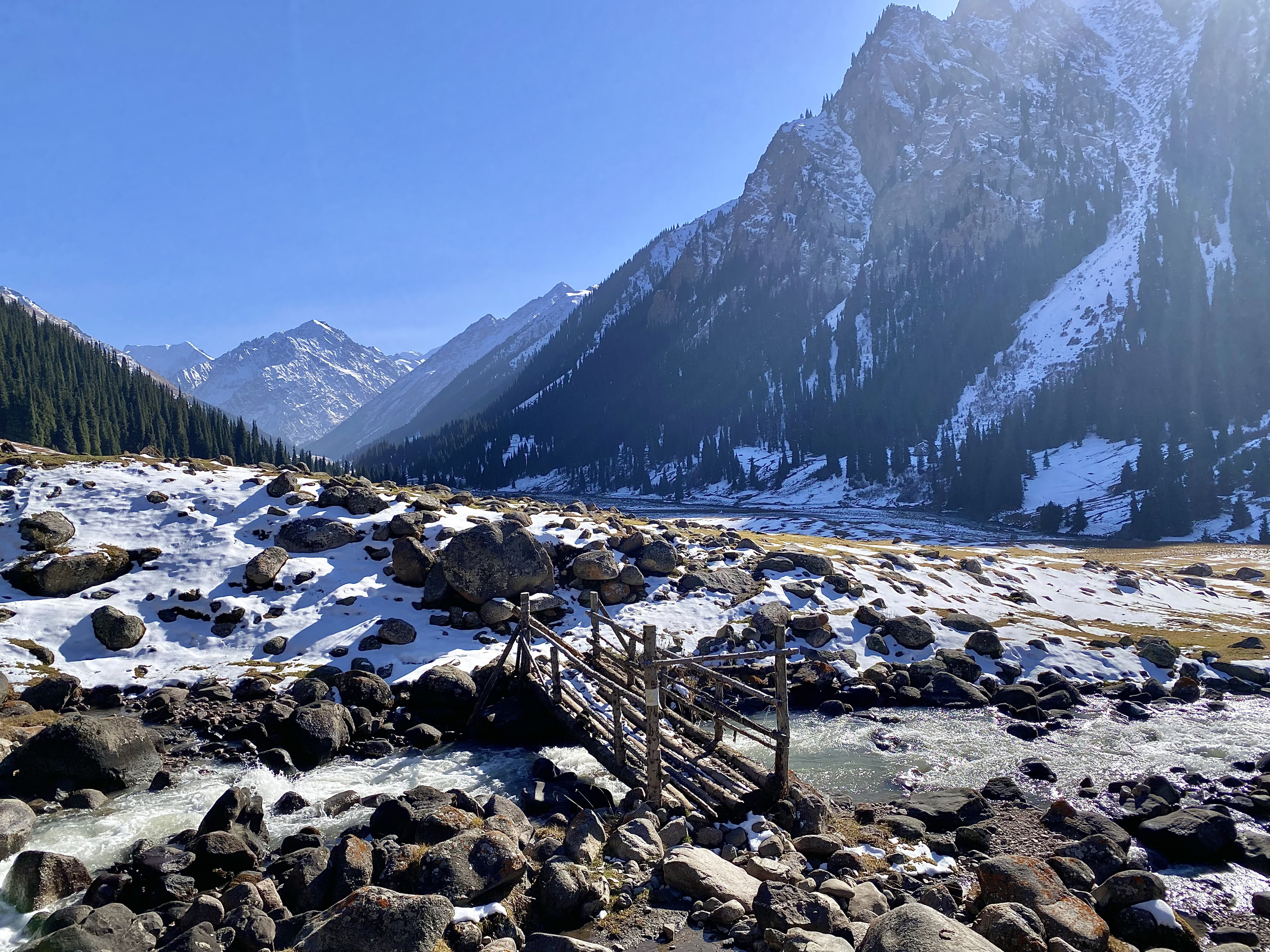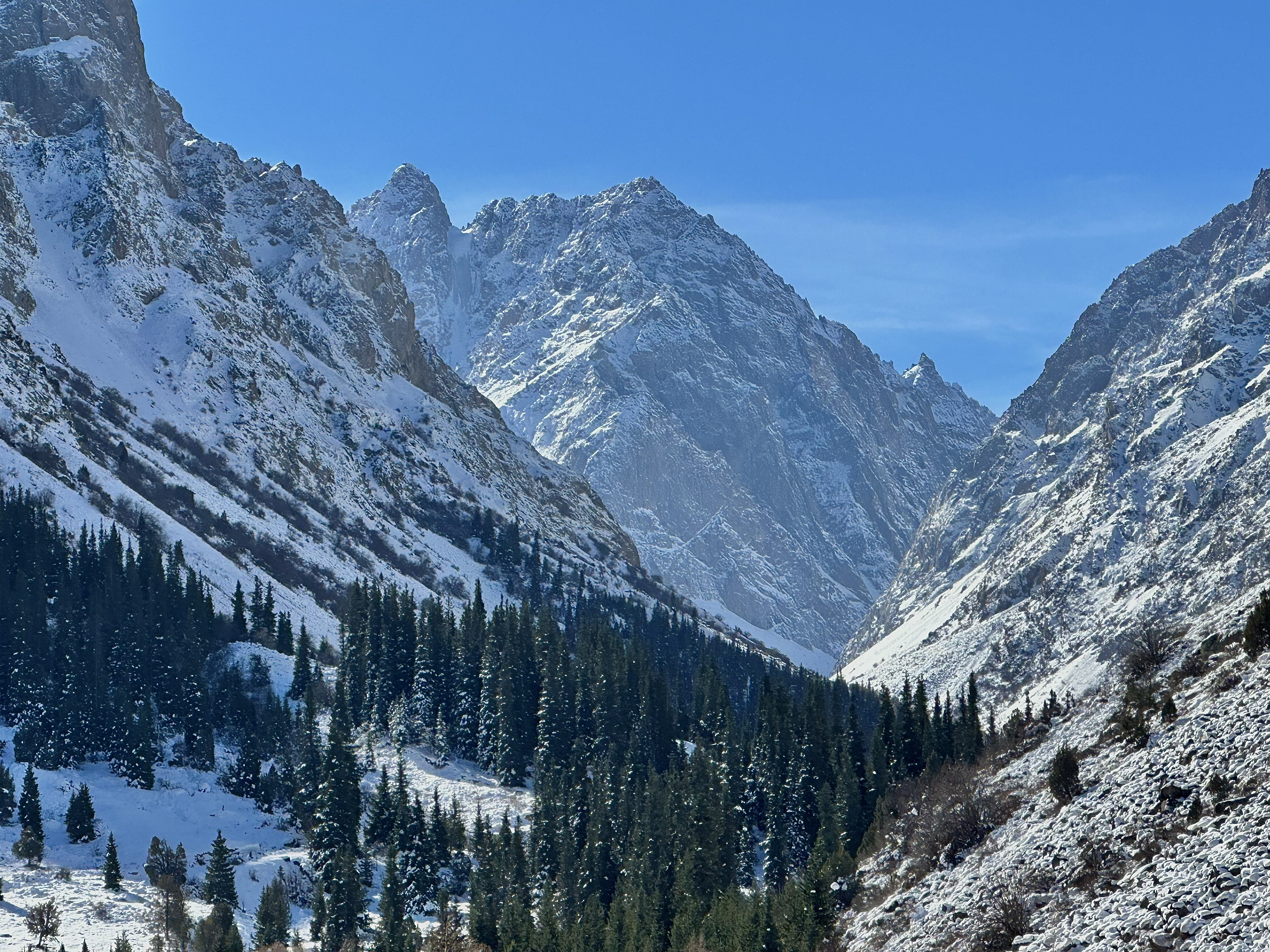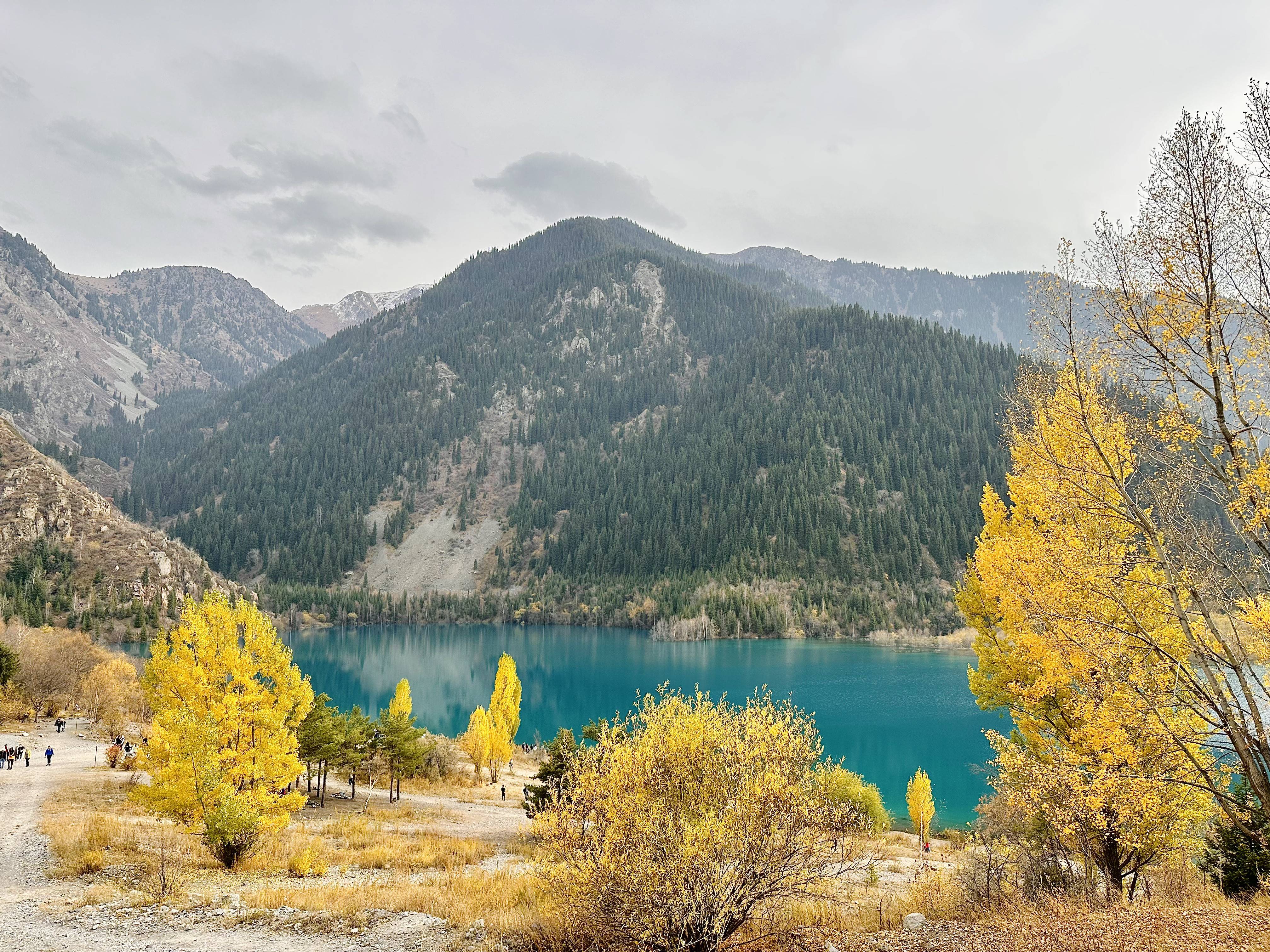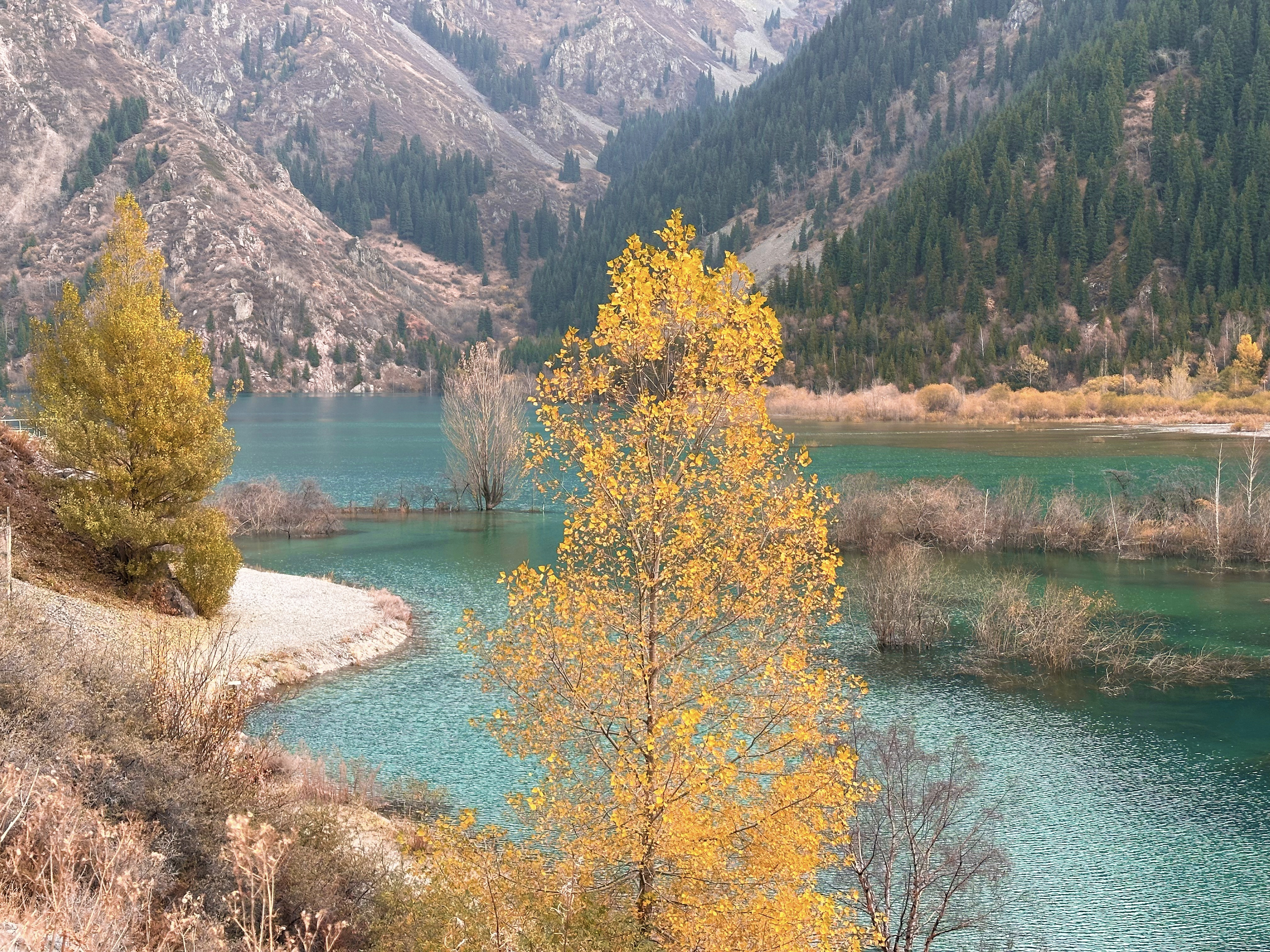 Con đường vào hồ Issyk là một trong những con đường mùa thu đẹp nhất ở Kazakhstan. Cách Almaty khoảng 70km, hồ Issyk có thể dễ dàng đi về trong nửa ngày. Nước hồ màu xanh như ngọc bích, là nước băng tan từ Thiên Sơn chảy xuống nên rất sạch và trong vắt. Hồ Kolsai - Kazakhstan nằm cách thành phố Almaty khoảng 240km về phía đông nam. Quang cảnh ở đây được mệnh danh là Thụy Sĩ của Trung ÁTại hồ có khá nhiều dịch vụ cho du khách trải nghiệm như chèo thuyền, cắm trại, cưỡi ngựa. Đây là một trong những địa điểm cắm trại yêu thích của người dân địa phương. Thời điểm đẹp nhất để tham quan hồ là vào lúc sáng sớm khi những tia nắng bắt đầu chiếu xuống mặt hồ. Charyn Canyon nằm ở rìa phía đông Almaty, cách thị trấn biên giới Tân Cương, Trung Quốc - Kazakh - Horgos khoảng 100km về phía tây. Vực núi này hình thành cách đây 12 triệu năm. Do có thời tiết rất khắc nghiệt, mùa đông nhiệt độ giảm xuống âm 20 độ và mùa hè nhiệt độ lên đến 43 độ nên khu vực này không có người sinh sống và được xếp vào hàng di sản thiên nhiên quốc gia. Vườn quốc gia Ala Archa (Kyrgyzstan) có lẽ là nơi dễ đi nhất trong toàn cung Trung Á. Con đường đến Ala Archa rất thơ mộng với lá vàng, lá đỏ và một vài ngôi làng nhỏ dưới chân núi.