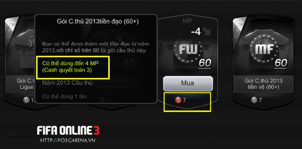 Cụ thể, hãy xem xét tình huống như sau: Giá vật phẩm A là 7 Cash, Cho phép dùng 4MP (Cash quyết toán 3).