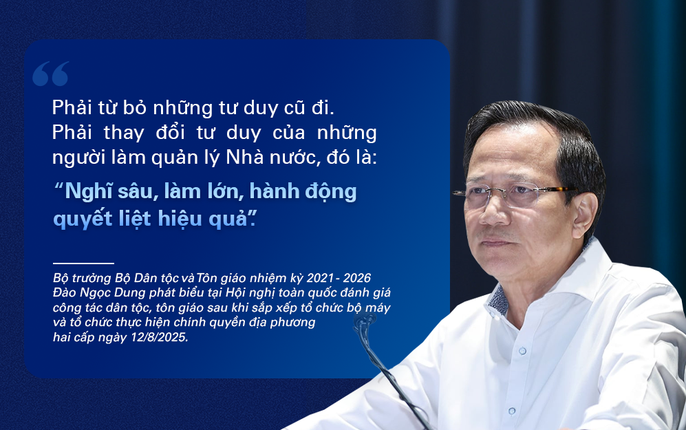 Ở cương vị mới, Bộ trưởng Bộ Dân tộc và Tôn giáo Đào Ngọc Dung lúc đó không chỉ “nhận việc”, mà bắt tay ngay vào “đặt nền”: Kiện toàn tổ chức, bảo đảm bộ máy vận hành thông suốt, đồng thời định hình một tư duy quản lý mới - lấy đối thoại làm cầu nối, lấy đồng hành làm phương thức, lấy tôn trọng làm nguyên tắc.