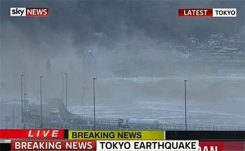 Đài Truyền hình NHK chiếu cảnh một cột khói đen cuộn bốc lên từ một tòa nhà ở Odaiba, ngoại ô Tokyo. Mọi hệ thống vận tải, trong đó có sân bay, ở Tokyo đều tạm ngưng hoạt động.