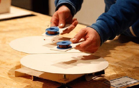 Còn về phía Roy, anh tạo ra một máy vẽ plotter sử dụng các tông Phần Lan siêu bền với các đường trục và đường ray trượt làm từ que hàn, mọi thứ được kết nối bằng keo siêu dính, băng dính và dây buộc. Giao diện gồm một nút chuyển đổi và 2 vòng quay. Một vòng quay chuyển động trên chiếc bút theo trục y trong khi vòng quay còn lại chuyển động trên bàn, dưới chiếc bút theo trục x; còn nút chuyển đổi dùng để nâng chiếc bút hoặc đặt bút lên giấy.