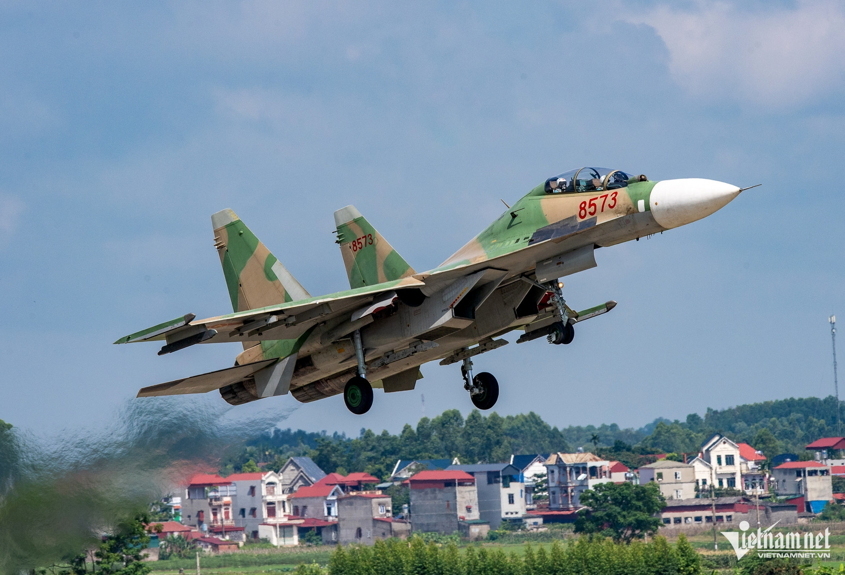 Ngày 25/7, dàn tiêm kích Su-30MK2 và dòng máy bay huấn luyện L-39NG xuất kích, cất cánh tập luyện.