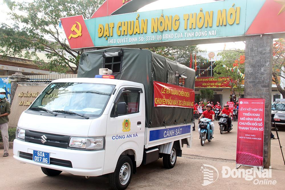 | Đoàn xe diễu hành ra quân tuyên truyền, hỗ trợ chuyển đổi thuê bao 2G sang 4G tại xã Sông Trầu (huyện Trảng Bom). Ảnh: Hải Quân |