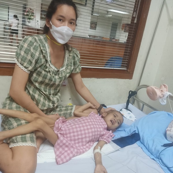 Tháng 9/2019, bé Kiều thường kêu đau chân. Nhiều ngày con vẫn kêu đau, chị Nhất hết sức lo lắng. Đưa xuống Hà Nội, bác sĩ chẩn đoán ban đầu bị viêm khớp. Thế nhưng về bệnh viện tỉnh điều trị được 12 ngày, con chẳng thể đi lại được nữa.