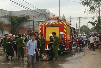 Không một ai đủ can đảm để tiếp cận đám cháy bởi sức nóng, mùi hôi và lửa quá cao. Rất may, phòng cảnh sát PCCC Quận 12 kịp thời điều động 5 xe chữa cháy đến hiện trường để chặn đứng ngay ngọn lửa không cho lan vào nhà kho bảo vệ an toàn hàng hóa.