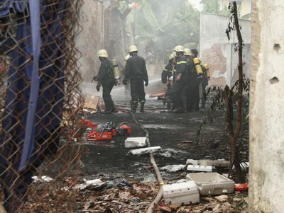 | Bao bì xốp bị thiêu rụi chỉ còn vương vãi vài chiếc trên bãi đất trống |