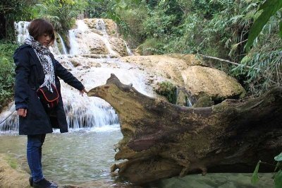 Tay, chân đỏ như tôm luộc vì nước lạnh, nhưng một đồng nghiệp của tôi vẫn hào hứng đứng dưới lòng suối để cảm nhận một chút sự kết tụ, đông cứng của thành phần đá vôi qua những lỗ chân lông… Có nghĩa, với nước ở suối, thác Hiêu chẳng những có thể biết cây, lá thành đá mà có thể biến hóa mọi thứ thành đá theo một nguyên lý rất đơn giản: ngâm các đồ vật dưới dòng chảy của con suối một thời gian thì sẽ hóa đá.