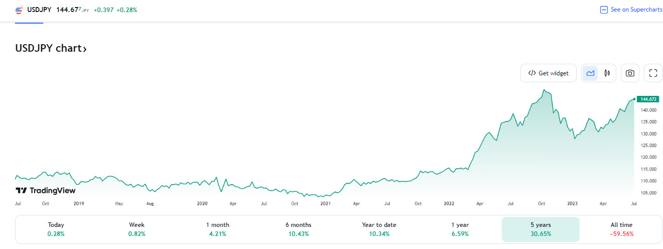 Tính tới 17h ngày 3/7 (giờ Việt Nam), đồng Yen Nhật đã xuống mức 144,6 yen/USD. Đây là mức giá yen thấp nhất kể từ giữa tháng 11/2022.