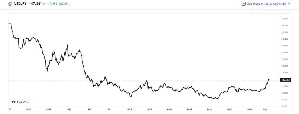 Yen Nhật giảm mạnh trong bối cảnh đồng USD tăng giá mạnh và vẫn nằm trong xu hướng đi lên khi mà Cục dự trữ liên bang Mỹ đã 5 lần tăng lãi suất kể từ đầu năm, từ mức 0,25% lên 3,25% và nhiều khả năng sẽ tăng 75 điểm trong cuộc họp tháng 11. Mục tiêu của Fed là 4,6% trong 2023.