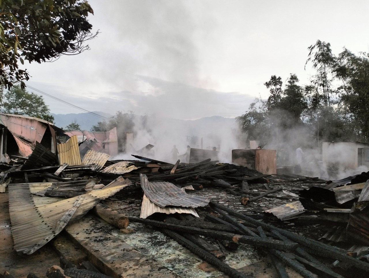 3h sáng nay, một ngôi nhà tại thôn Arầng (xã Axan) bất ngờ bốc cháy. Ngọn lửa cháy lan ra khiến 5 nhà chính và 3 nhà bếp ở gần đó bị thiêu rụi.