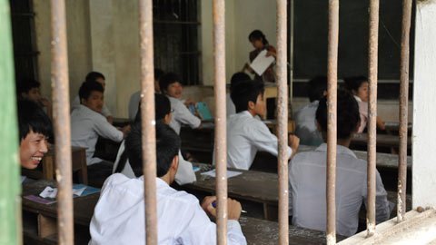 Điểm dừng chân đầu tiên của đoàn thanh tra là Trường THPT Phùng Khắc Hoan, huyện Thạch Thất. Ngôi trường này cách đây 6-7 năm là "điểm nóng" mỗi kỳ thi tốt nghiệp khi xảy ra hiện tượng người dân dựng thang vào tiếp "phao" cho thí sinh.