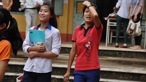 Học sinh phấn khởi rời khỏi phòng thi. Ảnh chụp tại Trường THPT Ba Vì sáng 3/6.