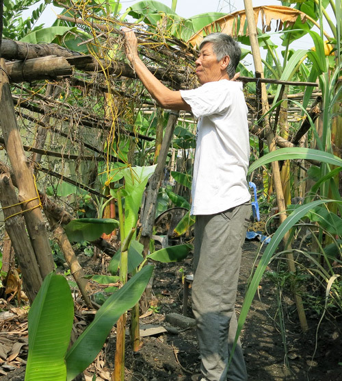 Bỏ hoàn toàn đôi nạng, ông Tuấn say sưa vun đắp mảnh vườn nhỏ và bắt đầu một cuộc sống mới.