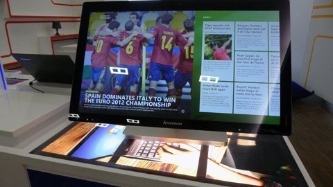Máy tính bảng cảm ứng dạng Surface đang được thử nghiệm, với khả năng cảm ứng đa điểm, nhận dạng được 10 đầu ngón tay, hình ảnh... từ khoảng cách tới 25 cm.