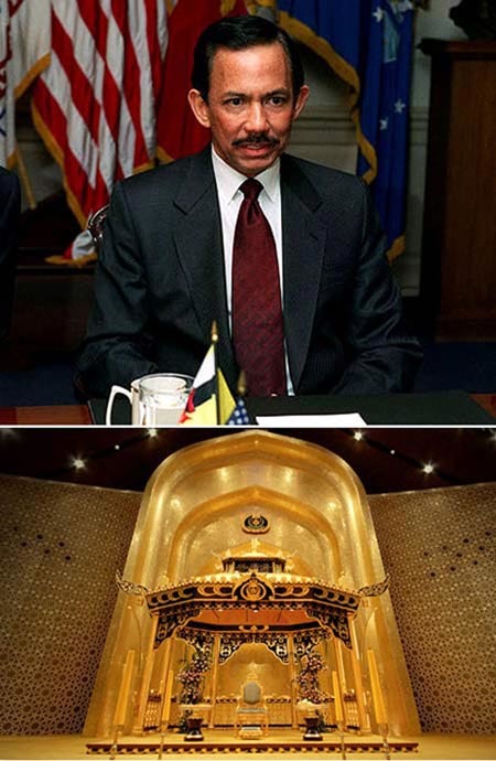 Quốc vương Hassanal Bolkiah – viị vua giàu nhất thế giới với tài sản lên khoảng hơn 40 tỷ USD (khoảng 823.000 tỷ VNĐ). Ngai của ông được làm toàn bộ bằng vàng nguyên chất.