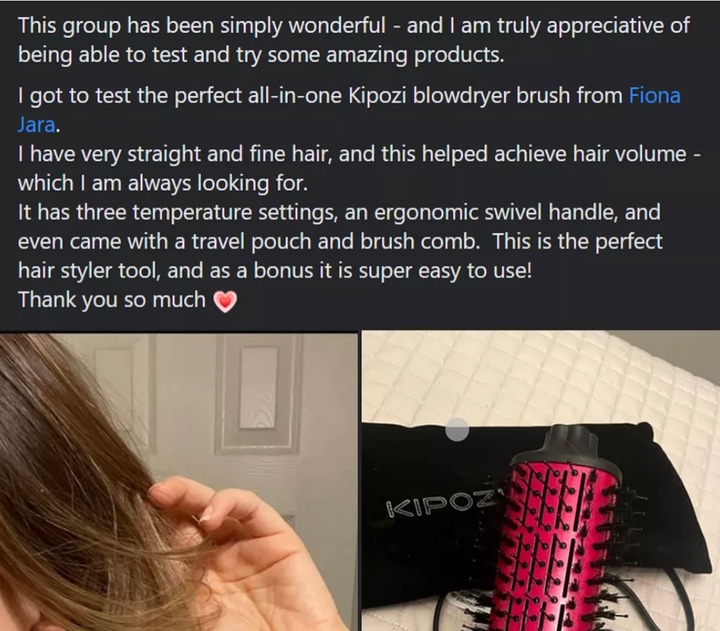 Admin của trang Facebook Club Ki-Fair tặng các thành viên nhiều mặt hàng từ các nhãn hiệu như Fairywill, Kipozi, Lonove, và Sboly. Các bài viết trong vòng vài tháng qua cho thấy nhiều sản phẩm bao gồm máy sấy tóc, sơn móng tay, và bàn chải điện, cũng như máy uốn tóc với hứa hẹn tạo nên mái tóc bồng bềnh "như sóng biển". Các admin khá kín đáo khi nói với các thành viên trong nhóm rằng họ có thể được hoàn tiền cho đơn hàng. Khi một thành viên hỏi giá trị một sản phẩm, một admin trả lời: "Kiểm tra inbox nha cưng".