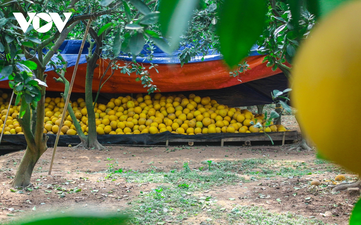 Hiện tại, họ chỉ thu hoạch nốt số bưởi đang còn sót lại trên cây để chuyển sang khâu dọn dẹp và chăm sóc cho vụ sau.