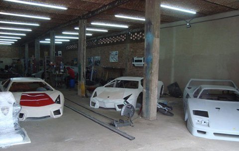 Thành lập cách đây chưa lâu, xưởng “nhái” siêu xe nằm tại Tepatitlan, Mexico có vẻ như đang ăn nên làm ra với hàng loạt các bộ cánh Lamborghini và Ferrari xếp đầy trên sàn nhà.
