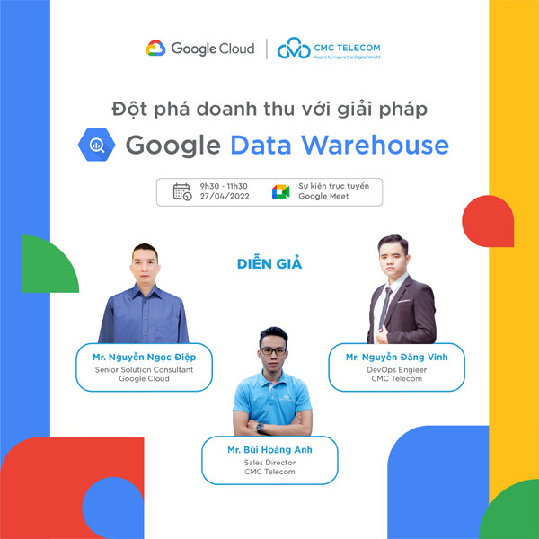 Sự kiện “Đột phá doanh thu với giải pháp Google Data Warehouse” do CMC Telecom phối hợp cùng Google tổ chức sẽ giúp doanh nghiệp xây dựng kiến trúc Data Warehouse tối ưu nhất với chiến lược hiện đại hóa dữ liệu, từ đó có được “Business Insight”, đoán định được xu hướng thị trường, dự đoán nhu cầu của khách hàng, phân tích lợi hại trong từng quyết định kinh doanh để tối ưu hóa chi phí và đột phá doanh thu.