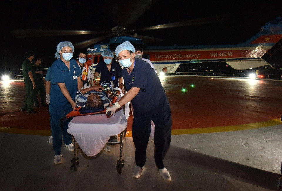 Một bệnh nhân đột quỵ được chuyển vào đất liền cấp cứu bằng trực thăng. Ảnh: Bệnh viện Quân Y 175.