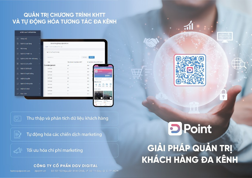 Hiểu rõ xu thế đó, Công ty Cổ phần DGV Digital - doanh nghiệp tiên phong trong lĩnh vực xây dựng nền tảng chăm sóc khách hàng (loyalty platform) tại Việt Nam - đã tập trung đầu tư phát triển hệ sinh thái loyalty trên ứng dụng DPoint. Với mong muốn đáp ứng mọi nhu cầu của thị trường và đồng thời mang đến sự đơn giản, thuận tiện cho đối tác, DPoint cung cấp bộ giải pháp quản trị trải nghiệm khách hàng cho đối tác từ quản lý thông tin khách hàng đa kênh, phân tích hành vi, cá nhân hóa trải nghiệm, quản trị chương trình khách hàng thân thiết. Với DPoint, doanh nghiệp có thể tối ưu hóa các chiến dịch marketing số của họ và đạt được mức tương tác với khách hàng cao hơn, qua đó, tăng trải nghiệm của khách hàng và giảm thiểu chi phí marketing và tăng doanh thu.