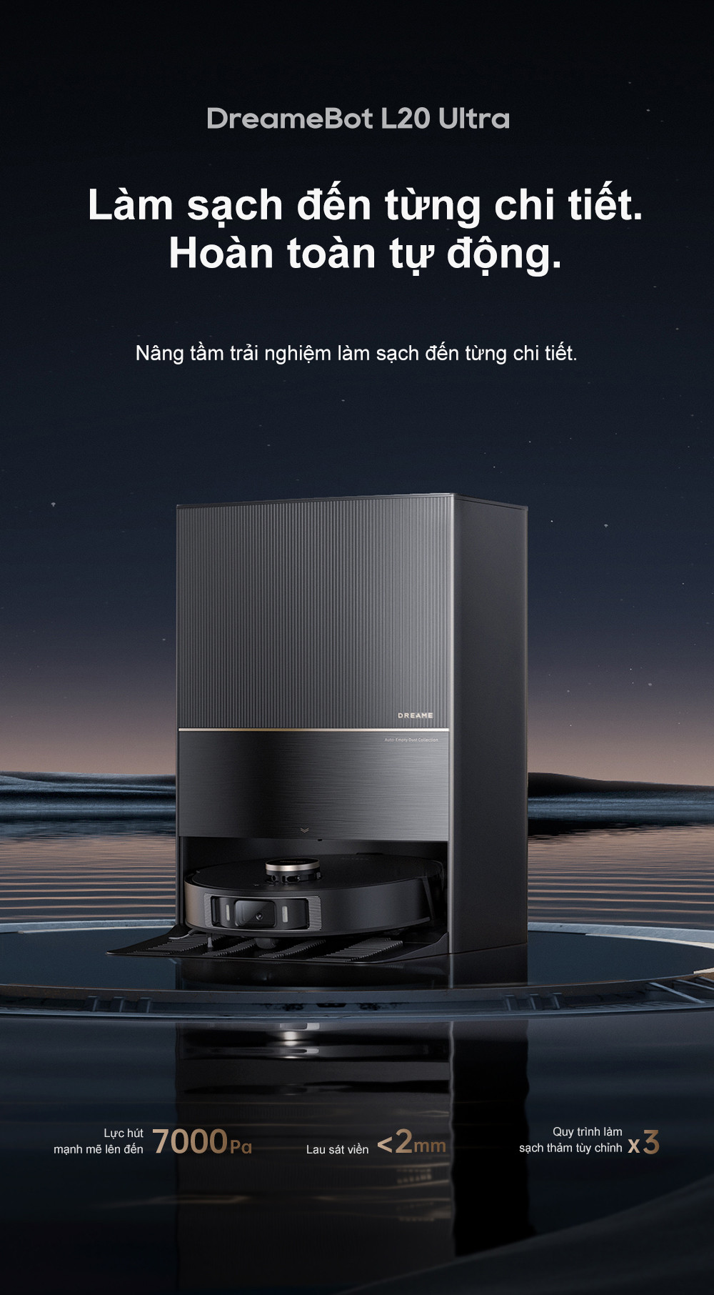 Đặc biệt, với lực hút 7.000 Pa mạnh bậc nhất hiện nay, DreameBot L20 Ultra có thể hút sạch những khu vực khó nhằn như thảm lông, gầm giường, chân tủ... giúp ngôi nhà luôn sạch sẽ, thoáng mát.