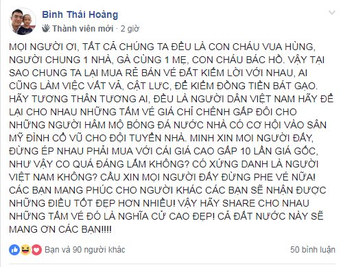 Trước thông tin về giá vé chợ đen quá cao, có không ít người đã kêu gọi dân phe vé không lên thổi giá quá cao, cũng như kêu gọi tẩy chay vé chợ đen.