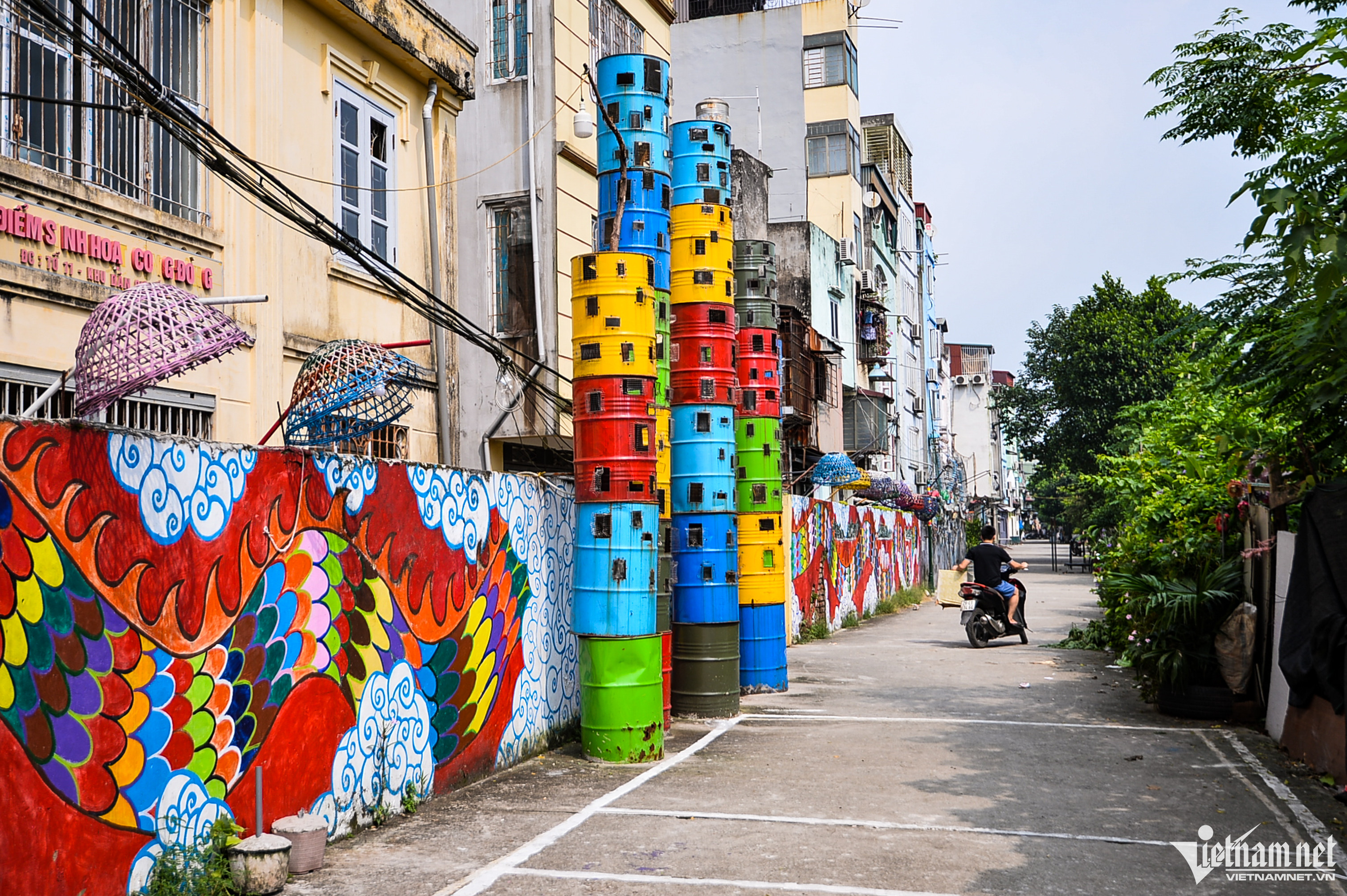 Khánh thành từ năm 2020, đến "công trình" này ngày càng trở nên nhếch nhác. Trước đó, tiếp nối thành công của dự án bích họa Phùng Hưng, chính quyền địa bàn cùng một nhóm nghệ sĩ tình nguyện đã thực hiện cải tạo, biến khu vực đầy rác thải ở phường Phúc Tân thành không gian văn hóa giải trí. Nguyên vật liệu để sáng tác tại đây là vành lốp xe, thùng phuy, chai lọ...