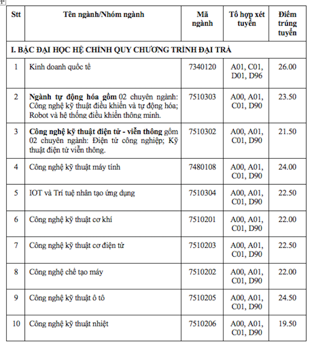 Năm nay, Trường ĐH Công nghiệp TP.HCM tuyển hơn 8.000 sinh viên cho 45 ngành và nhóm ngành. Đối với phương thức xét tuyển từ kết quả thi tốt nghiệp THPT, nhà trường nhận hồ sơ xét tuyển từ 19 đối với các chương trình đại trà; 18 điểm với chương trình chất lượng cao, liên kết, riêng phân hiệu tại Quảng Ngãi nhận hồ sơ xét tuyển từ 17 điểm.