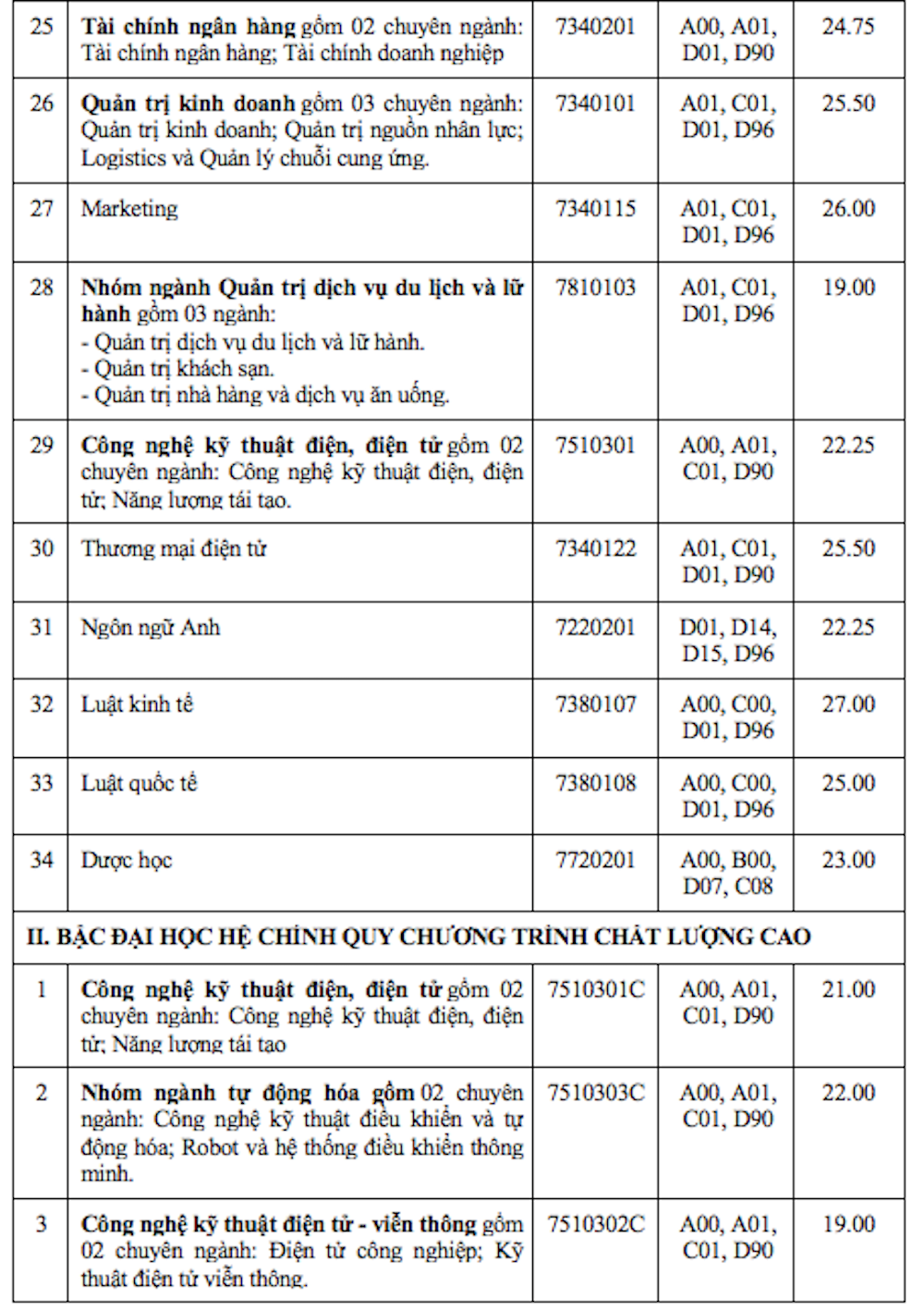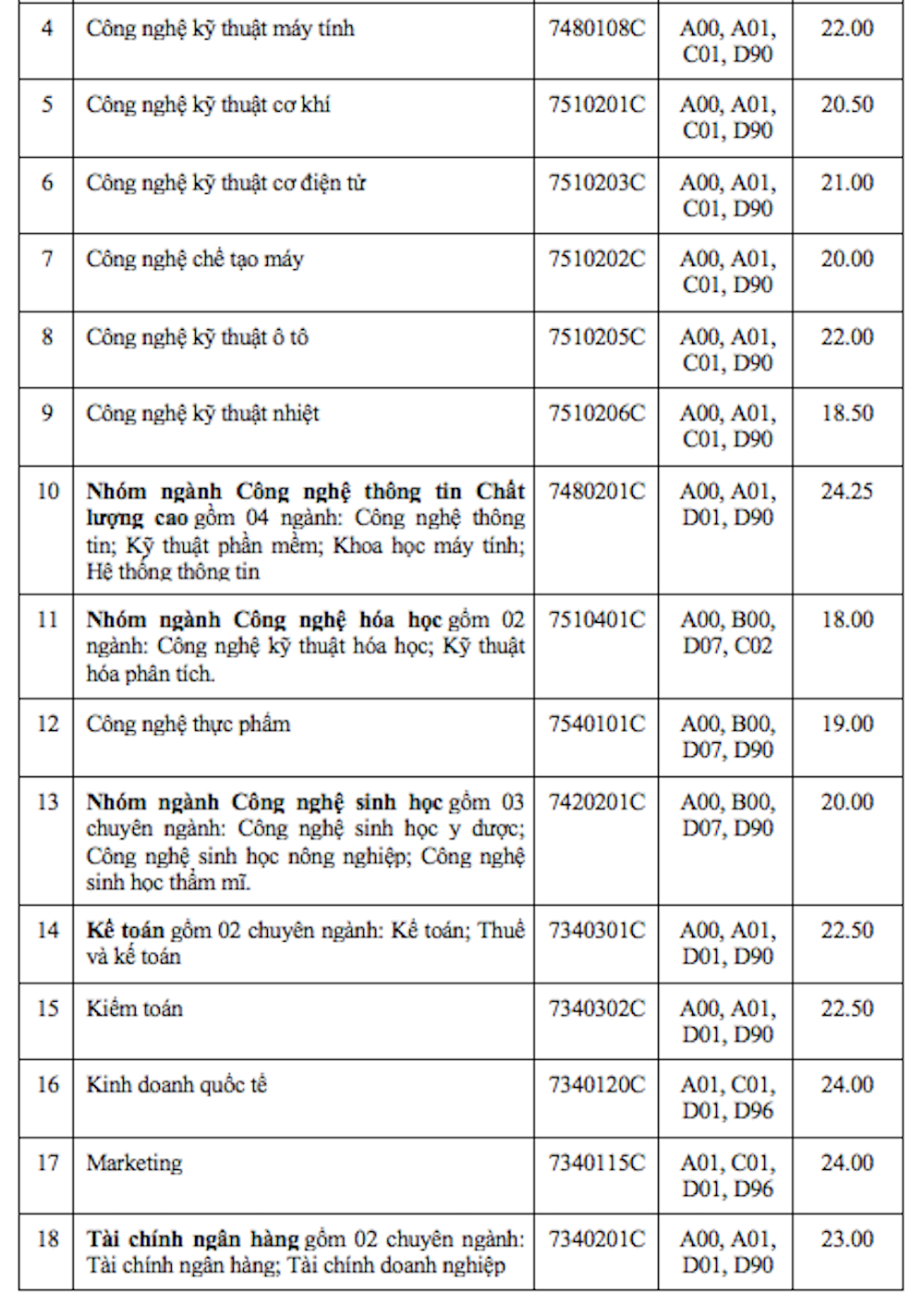 Trong khi đó, những ngành xét các tổ hợp A00 (Toán, Lý, Hóa), A01 (Toán, Lý, Anh), C01 (Toán, Văn, Lý) và D01 (Toán, Văn, Anh) sẽ giữ nguyên hoặc có xu hướng giảm nhẹ so với năm ngoái, khoảng 0,5-1 điểm.