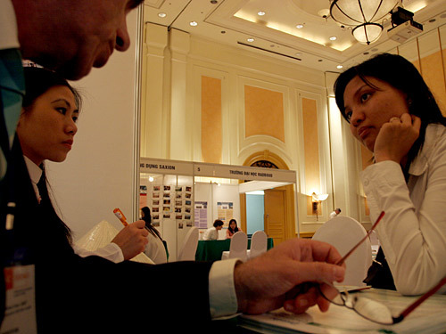 | Tìm hiểu thông tin du học. Ảnh: Lê Anh Dũng |