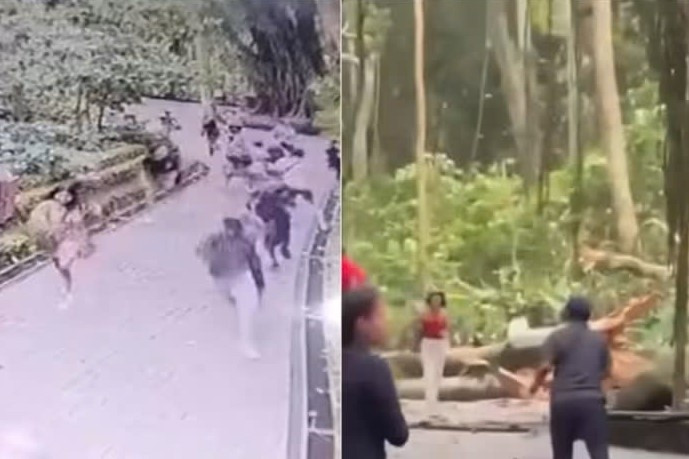 Những hình ảnh được người qua đường ghi lại cho thấy nam du khách đang loay hoay để "gỡ" lưỡi ra.