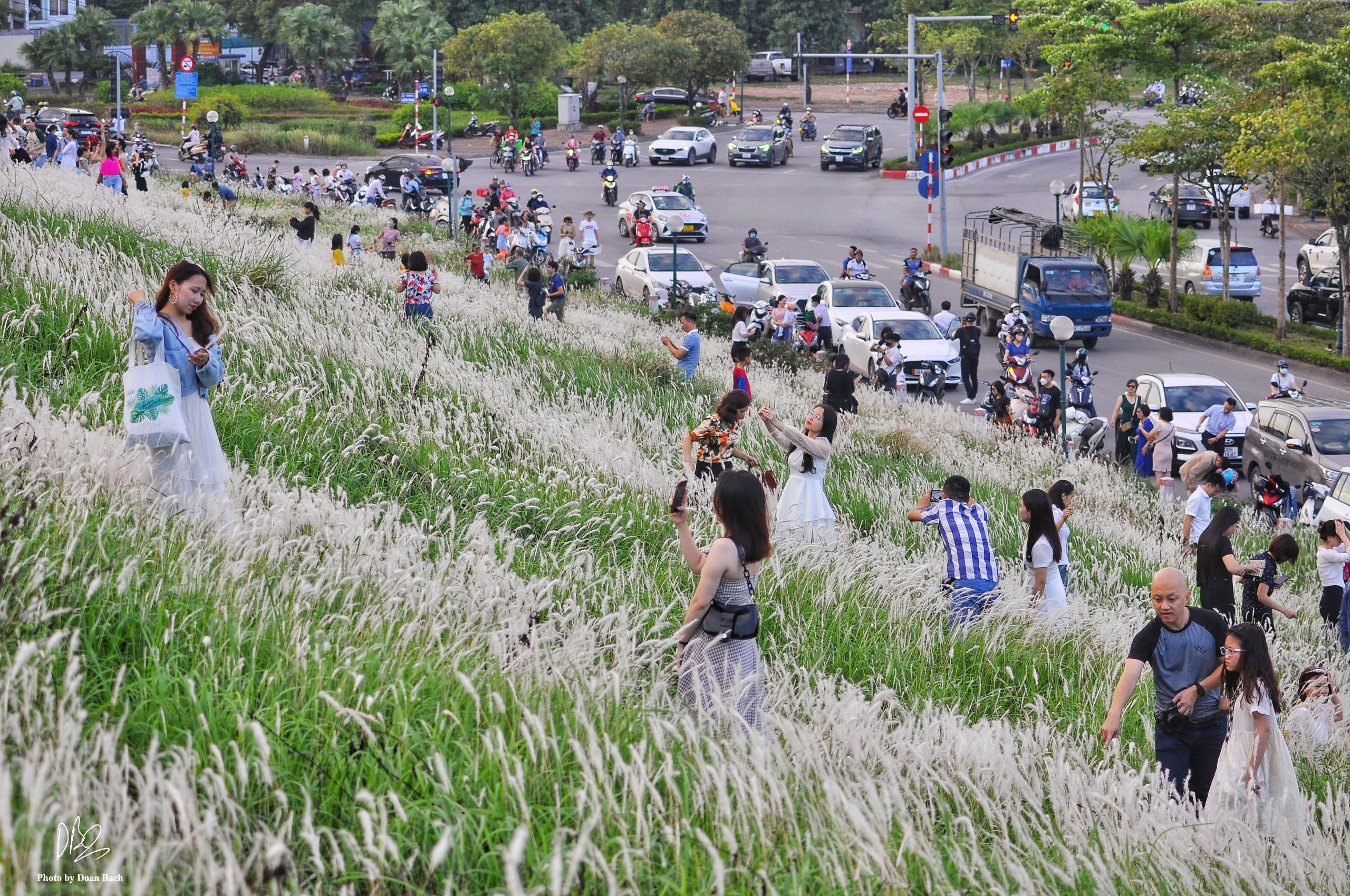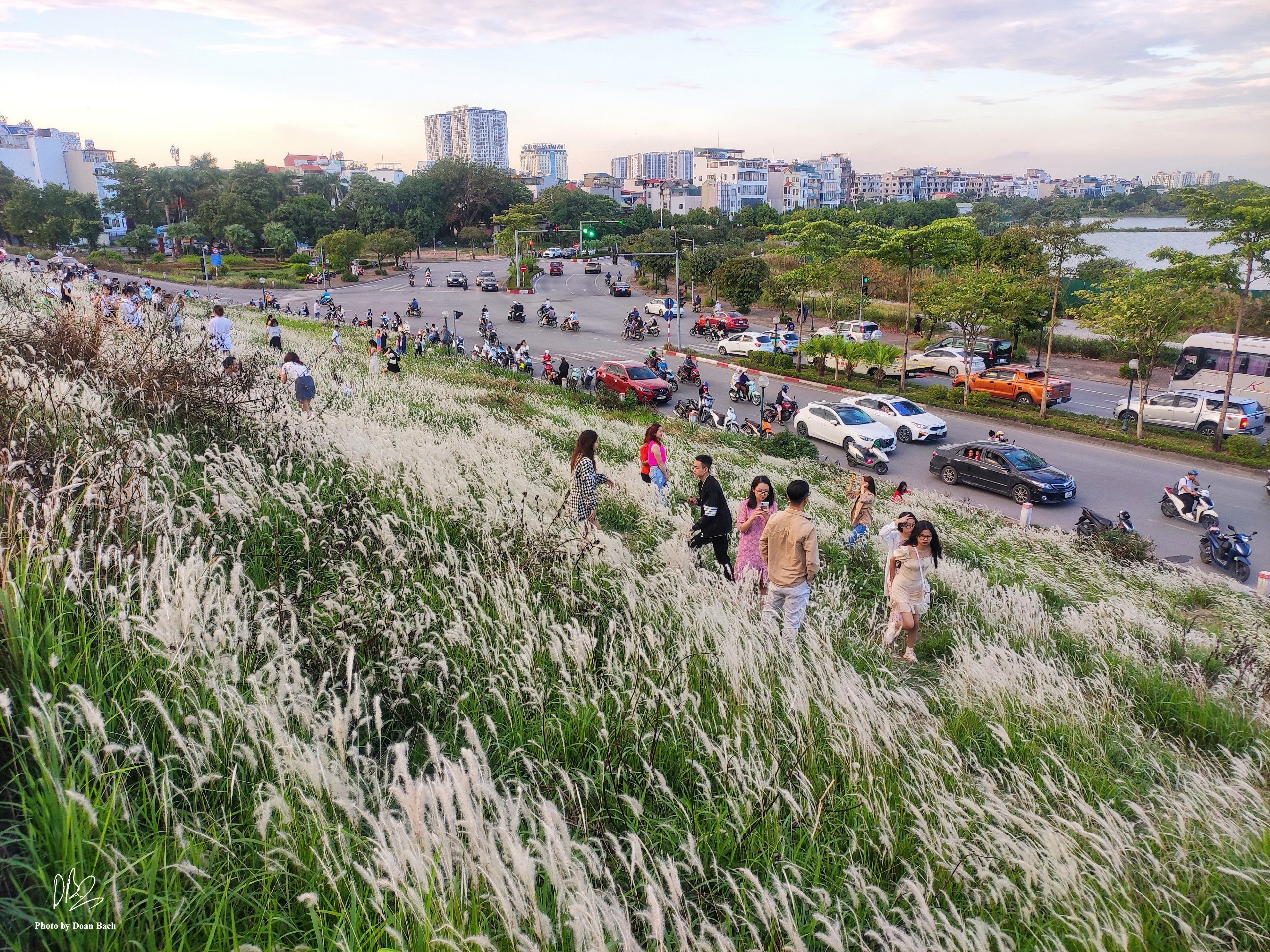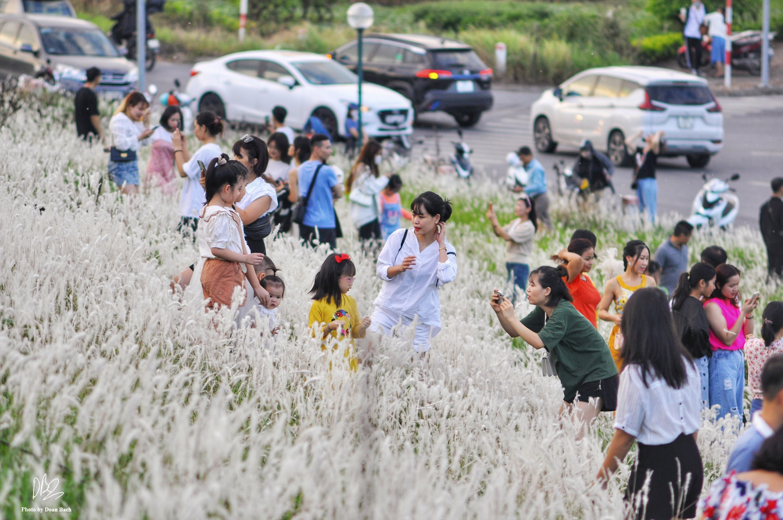 Không chỉ thu hút ánh nhìn của những người đi ngang qua mà bãi cỏ lau thơ mộng này còn lôi cuốn nhiều tín đồ mê xê dịch trong và ngoài Thủ đô đến chụp hình, check-in.