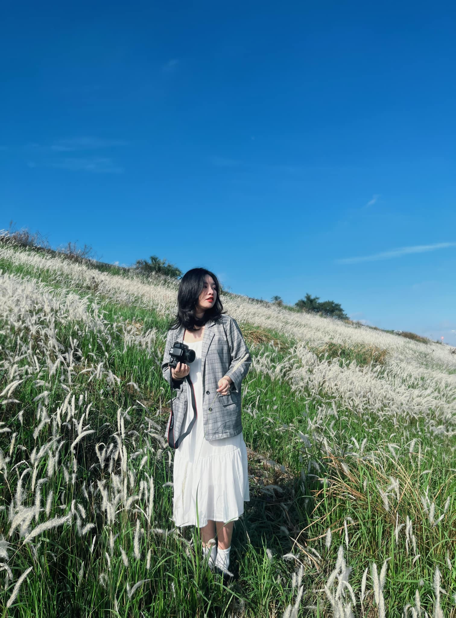 Cỏ lau ở đây mọc chỉ cao ngang hoặc hơn đầu gối người lớn một chút, du khách có thể thoải mái tạo dáng, chọn góc chụp theo ý muốn.