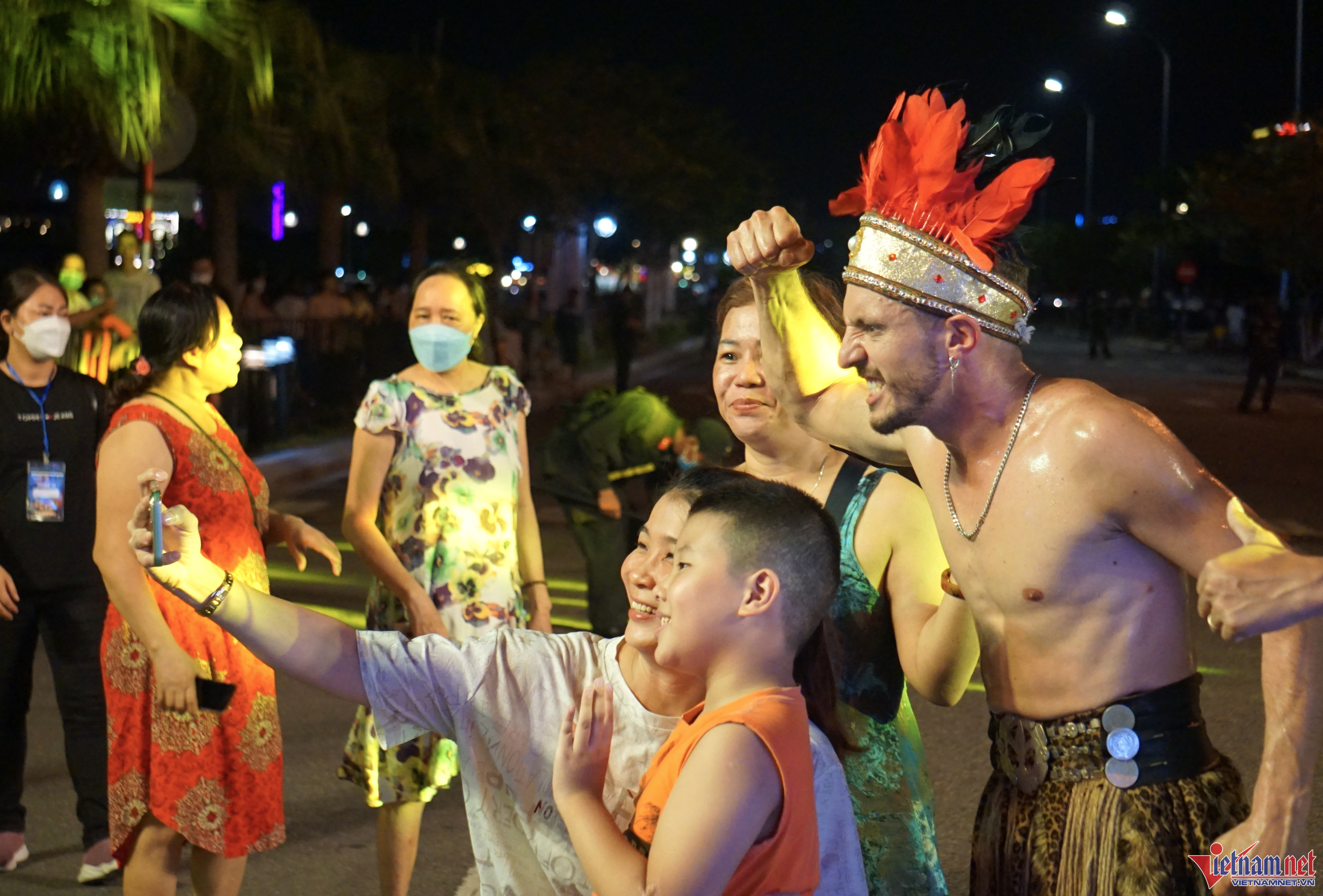 Tối nay, dọc tuyến đường Bạch Đằng nối dài, thu hút nghìn du khách và người dân theo dõi các tiết mục biểu diễn của các vũ công. Mỗi màn biểu diễn đặc sắc mọi người vỗ tay, hò hét tạo không khí sôi động…